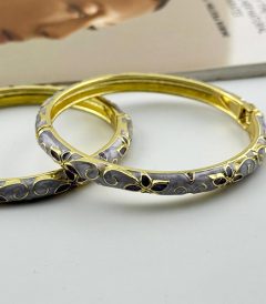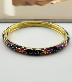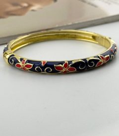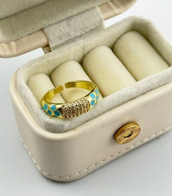 انگشتر میناکاری آبی با نوار نگینکاری طلایی