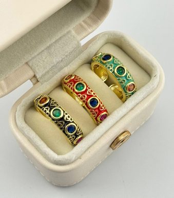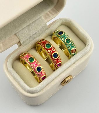 انگشتر میناکاری سنگکاری شده در چهار رنگ (قرمز، سبز، صورتی . مشکی)