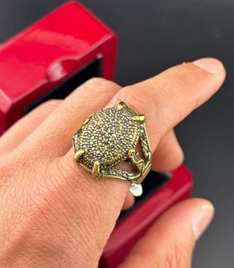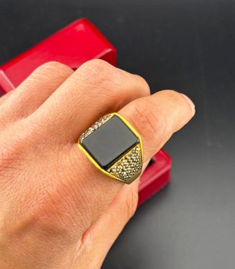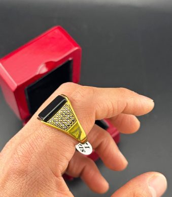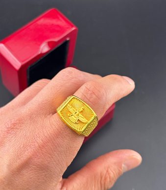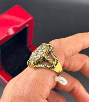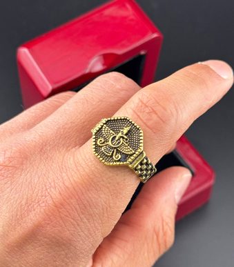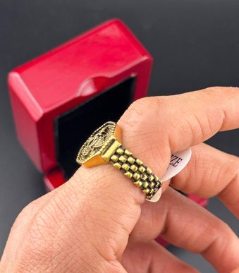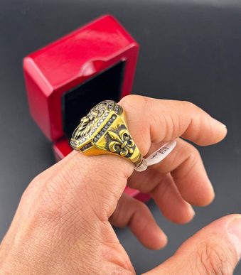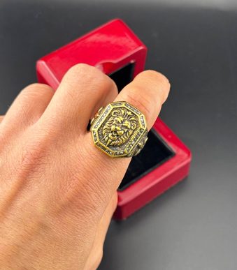 انگشتر مردانه هشتضلعی با طرح شیر برجسته
