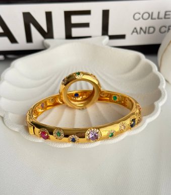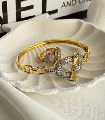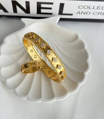 ست دستبند و انگشتر نقرهای با طراحی برجسته و ظریف