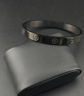 خرید بنگل مردانه مشکی طرح کارتیه | دستبند النگویی استیل رنگ ثابت