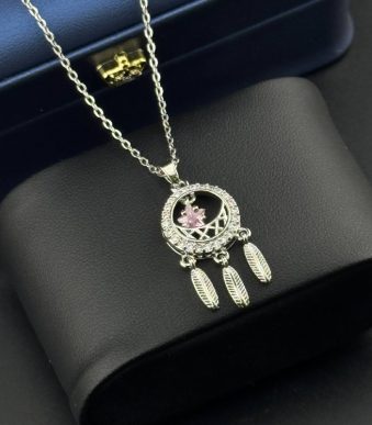 گردنبند دریم کچر (کابوسگیر) نگیندار | طرح ماه و ستاره با آویز پر