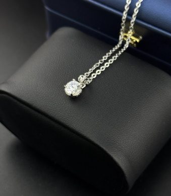 گردنبند مینیمال تک نگین (سولیتر) درخشان | پایه طرح تاج کلاسیک