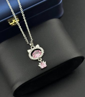 گردنبند طرح گربه با نگین صورتی و آویز پنجه | اکسسوری فانتزی دخترانه