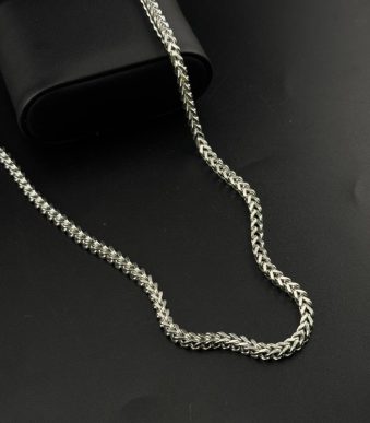 گردنبند زنجیر استیل مردانه بافت دم روباهی (Foxtail) نقرهای