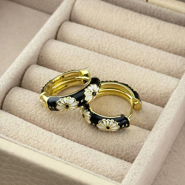 گوشواره حلقهای میناکاری طرح گل بابونه